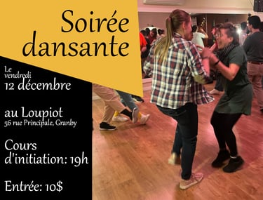 Pas besoin de réservation ni de partenaire. Prévoyez des souliers d'intérieurs et des boissons pour vous rafraîchir. Venez rencontrer notre belle communauté !